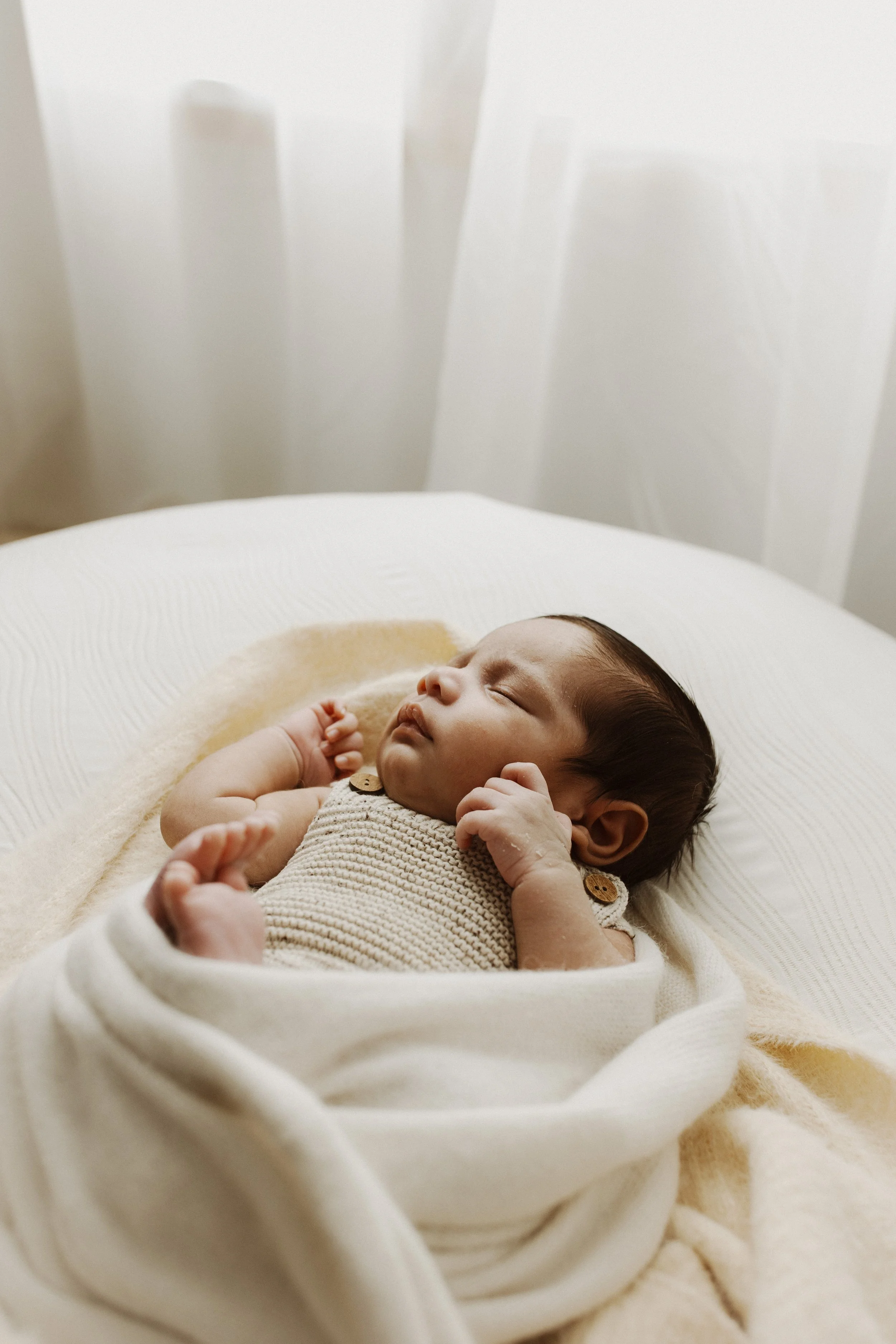 Typically we like to shoot newborn photos between 7-14 days old, however can extend all the way to 21 days. During this time, newborns are more sleepy and can easily be wrapped and posed. My style is more natural baby-led posing so I can be super flexible on dates.